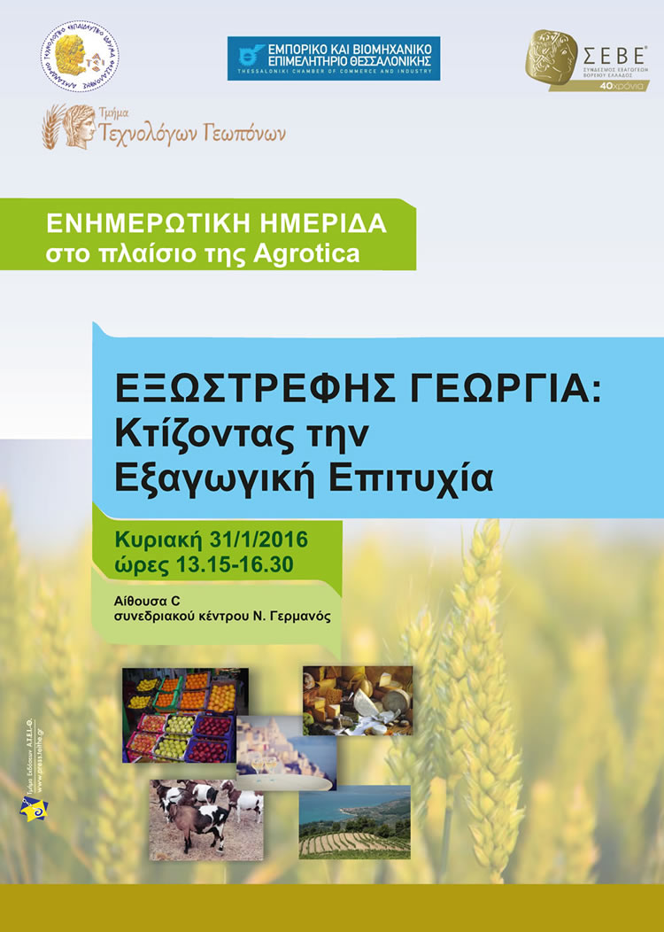 The conference was organized with great success by the Department of Agronomy Technologists ATEI-Th, the Trade-Industrial Chamber of Thessaloniki and the Exporters Association of Northern Greece (SEVE).