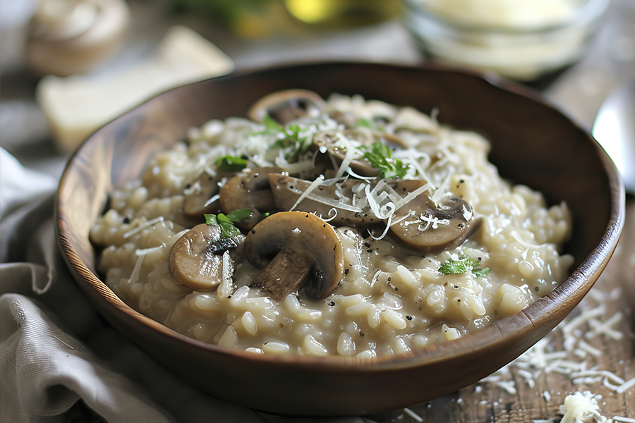 Σε ένα μεγάλο τηγάνι, ζεστάνετε 25 γρ. βούτυρο και 25 ml ελαιόλαδο. Προσθέστε τα μανιτάρια...